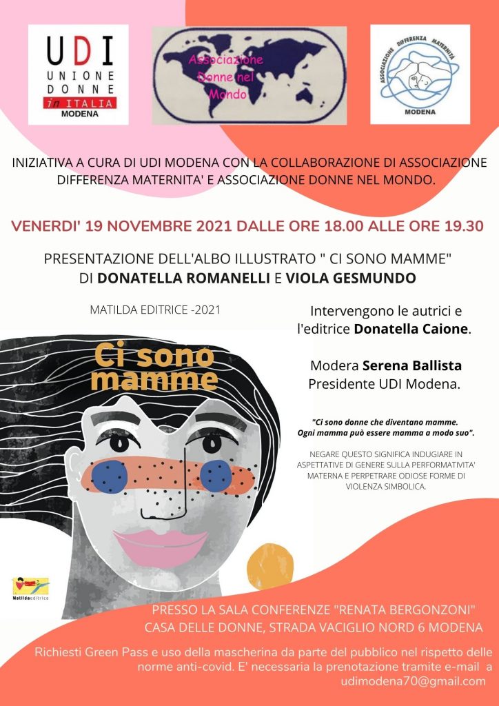 Presso la sala Renata Bergonzoni della Casa delle Donne, presentazione dell’albo illustrato Ci sono mamme di Donatella Romanelli e Viola Gesmundo (Matilda Editrice, 2021)